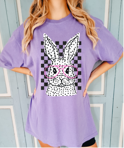 BLACK AND WHITE BUNNY WITH GLASSES DTF PRINT