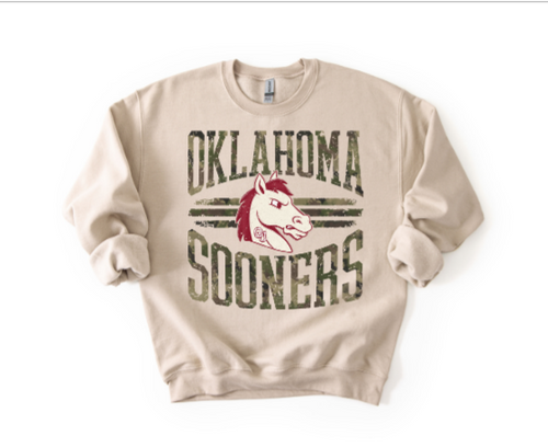 VINTAGE CAMO MASCOT SOONER CREWNECK SWEATSHIRT
