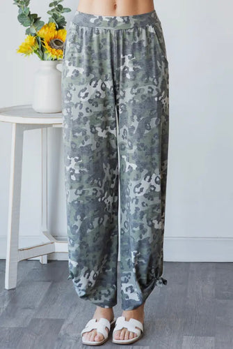 LEOPARD & CAMO SIDE SLIT ANKLE TIE PANTS