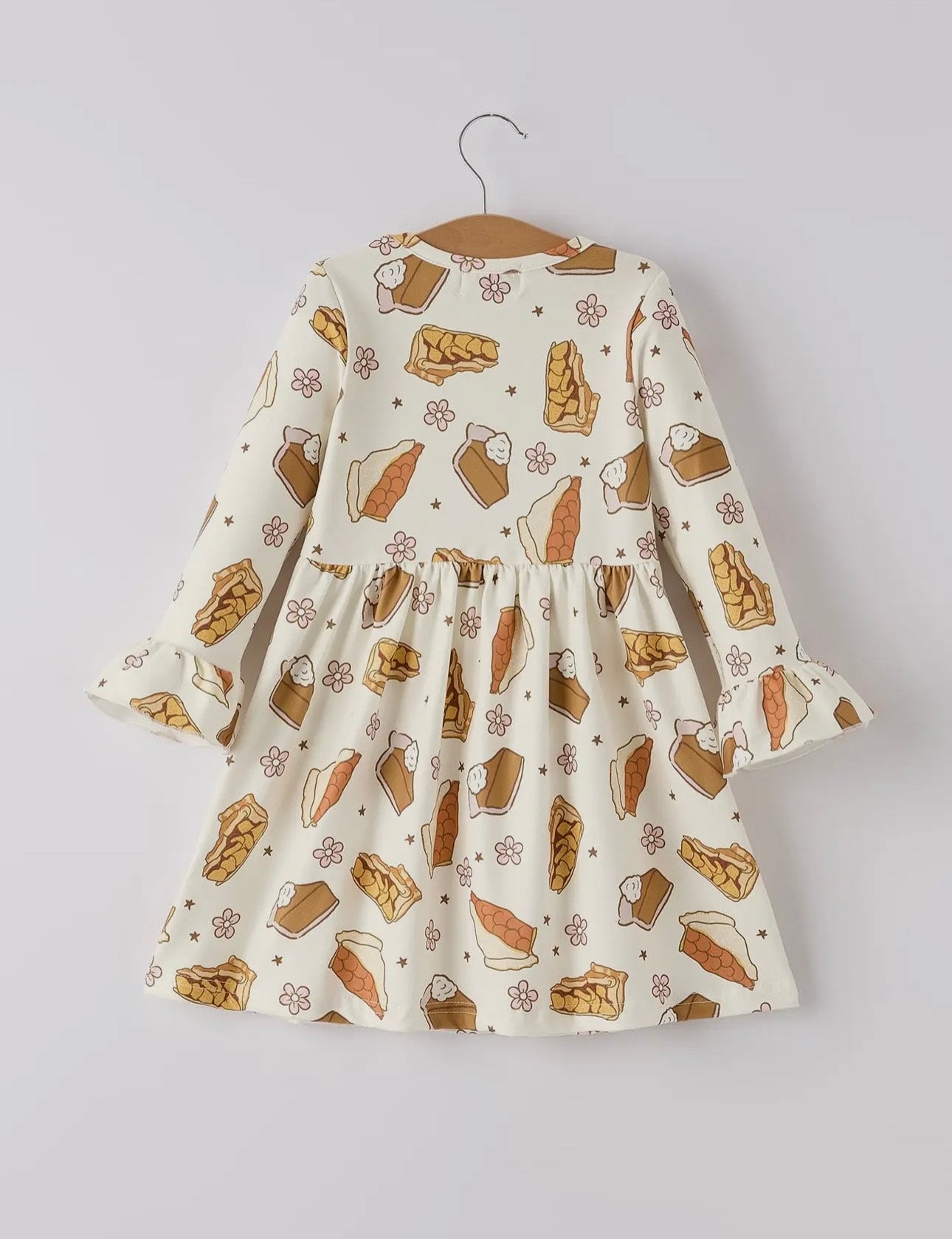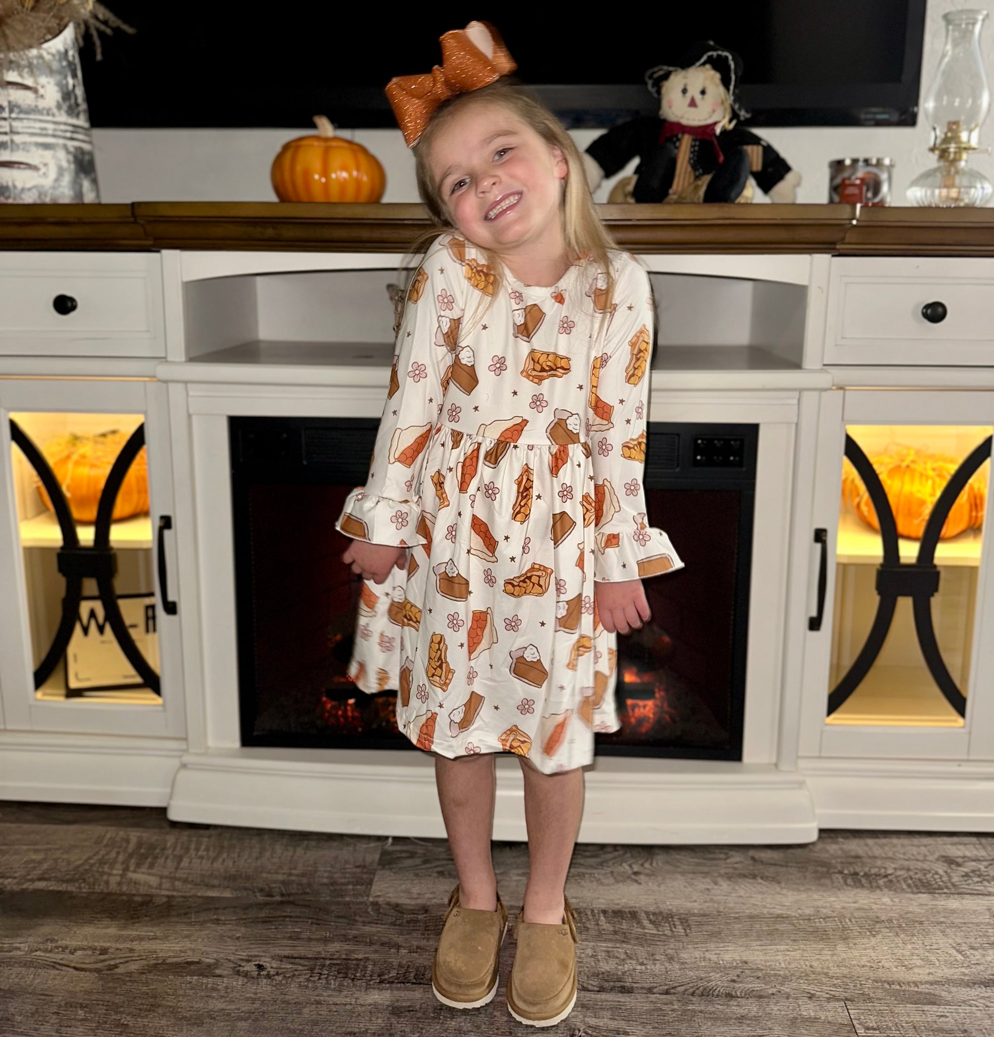Get ready to celebrate Thanksgiving in style with our cute Holiday pies girl's dress!!
